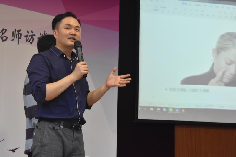 最后进入主题活动环节——名师访谈沙龙和心理专题讲座。贺岭峰教授根据现场学生所画的“房、树、人”图稿进行心理投射测试解析,分析当下学生的情绪和状态,激起在场学生的参与热情,拉开名师沙龙的序幕。随后贺教授分享了一些工作中遇到的经典案例及应对措施,对“如何正确看待心理咨询中的羞耻感”、“大学生常见的几类心理问题”等进行了阐释和现场互动,解开许多同学的心头之惑。