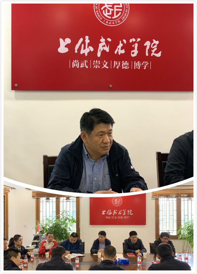 郭玉成结合武术学院的发展历史和学科特色,为队员们重温了武术学院近年来在学科建设、科研创新、人才培养、服务社会等方面的特色工作,并希望广西柳州特警支队能够成为武术学院服务社会的一座桥梁,同时为专业建设、人才培养工作提供重要支撑。