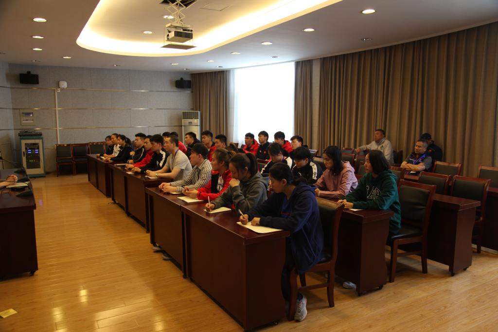 4月26日上午,队伍在体训学院1111会议室进行了2019-2020赛季夏季集训的第一次会议,会议中对上一年度的训练和比赛进行了总结,对即将到来的新赛季进行训练任务部署,本次会议召开意味着国家钢架雪车队在上海体育学院的集训正开始,队伍将在4月26日至30日将进行为期五天的军训。