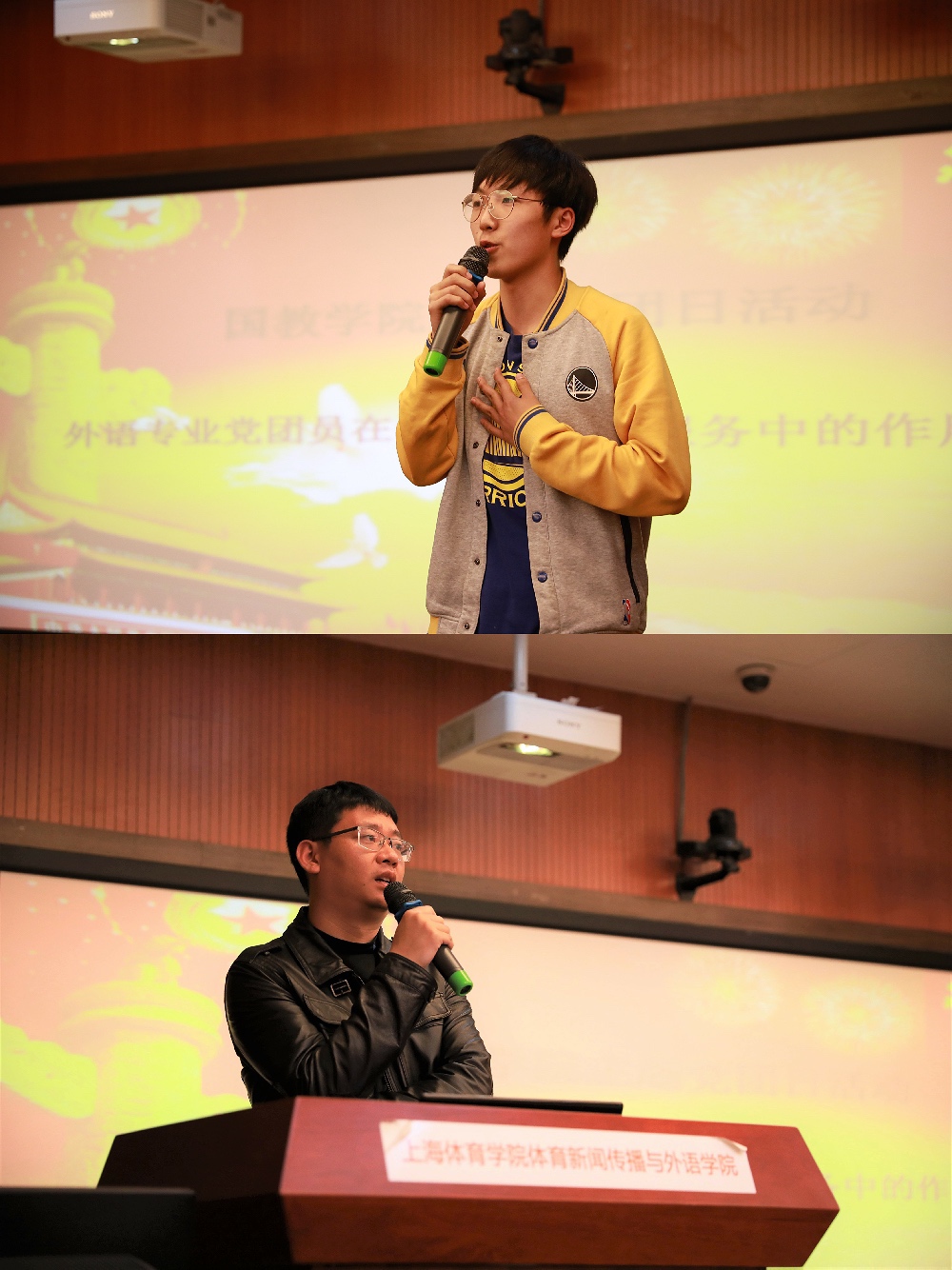 去年,首届中国国际进口博览会的成功举办让世人将目光都聚集到了上海,16级英语系也有六位优秀的学生党员参与其中。网上运维组的四位同学刘婷、李翔、武文熙、于沫分别分享了自己工作中的一些趣事,通过打电话给参展商确认信息的过程,让他们充分感受到了自己还需要提高对不同口音的适应能力,加强对相关专业术语的学习,才能做好沟通的桥梁,而这个学习的过程其实就是自身实力提升的过程。他们还谈到,通过此次志愿者的经历,他们不仅锻炼了语言能力,而且通过观察指导老师工作中的细节,还提高了自己执行任务的效率与能力。酒店媒体接待组的吴默含则将自己在此次志愿服务中得到的感悟凝练成了一句话:“来都来了,就要做好”,只有以认真的态度投入到志愿服务中,才能实现自我的价值。媒体班车组的韦沫晴通过分享自己的进博经历,且结合前面同学纷纷提到的体育赛事机遇,建议大家加强对第二外语的重视程度。近年来,红足一1世与日本和法国的学校交流合作项目日益增多,再加上2020年东京奥运会和2024年巴黎奥运会即将举办,学好英语再学好第二外语,体育学院的外语专业学子将大有可为。