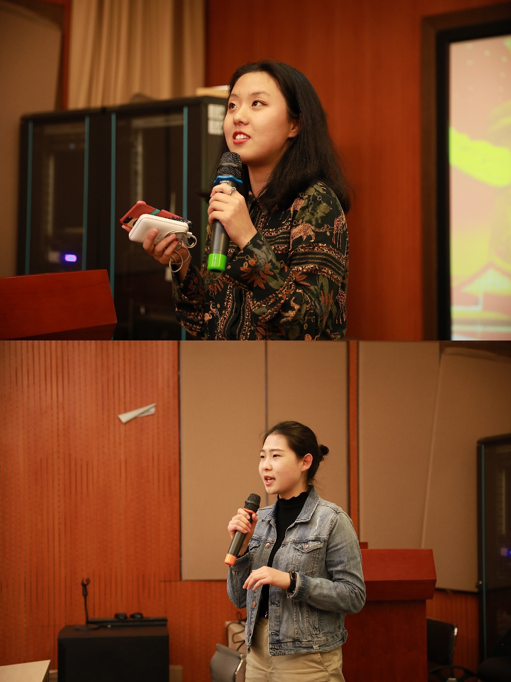 13级英语系学生党员,原新外学院第七届团总支副书记洪金涛进行了分享。她曾是2016年国际体操联合会蹦床世界杯的语言服务志愿者。三年前的这次志愿经历在她看来是一次十分宝贵的经历,是她第一次一对一的从事外国体育代表队对接工作,近距离感受体育的魅力。在此之前,她几乎不了解蹦床这个体育项目,为了做好志愿服务,她自己做了很多的功课,努力学习蹦床的专业术语,以便更好的与代表队交流。每天的工作十分繁重,协调队伍的饮食起居、训练比赛安排等,最终凭借绿瓦人对体育的执着与奉献精神,出色的完成了志愿服务任务。洪金涛提到提供语言服务是一件很快乐的事情,体育学院英语专业的学生相比于其他高校同专业学生最大的优势就是了解体育项目,如果能把第二外语也学好的话,那就更能发挥自己的作用了,洪金涛目前在体训学院读体育教育专业的硕士,她也表述目前体育行业、体育产业蓬勃发展,外语+体育的模式一定前途光明大有可为,她也鼓励英语系的学弟学妹们考取体育专业的硕士研究生,成为更好的体育人。