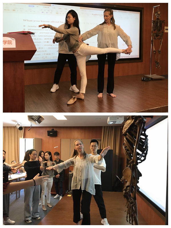 第三日的舞蹈科学相关讲座,Margaret Wilson教授以芭蕾训练为例,和同学们分享了舞蹈动作技术技巧的科学原理与规律,强调舞蹈生物力学知识对舞者在损伤防治、科学训练等方面的重要性。其次,还分享了舞蹈科学虽然从理论的深入探索方面不及运动科学,但学科知识也具广泛性和包容性。她还指出,舞蹈与身体的关系应是舞蹈科学研究的核心问题,基于“人文关怀”视域下的身体及其舞蹈运动研究,将会拓展舞蹈科学研究的外延。舞蹈功能的挖掘与开发,及其贡献与人及社会发展的作用发挥是不可或缺的一个重要方面,研究舞蹈在其他领域(医疗、教育、健康等)的作用与功能是舞蹈科学的重要任务。