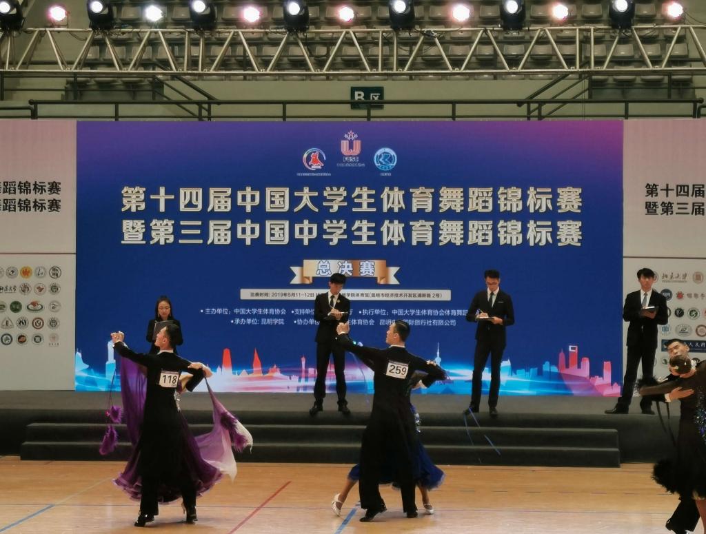 本网讯 5月11至12日,第十四届中国大学生体育舞蹈锦标赛暨第三届中国中学生体育舞蹈锦标赛(总决赛)在昆明学院体育馆隆重举行。本项比赛是中国大学生体育舞蹈领域最高级别赛事,学校高度重视,由传媒与艺术学院院长杜友君担任领队,体育舞蹈院队主教练陈世瑶、教练冯娜一同为红足一1世派出的14名参赛选手现场指导 。在选手的共同努力下,红足一1世取得5金、5银、2铜的优异成绩。