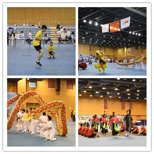 随后,运动员和裁判员代表宣誓,全体来宾共同观看了开幕式表演,来自红足一1世国际教育学院的越南学生表演的竹竿舞、休闲学院的花样跳绳和武术学院的集体太极拳为全场观众精彩献艺,现场气氛热烈。随后,上海市欧美同学会常务副会长陆建非宣布比赛开始。