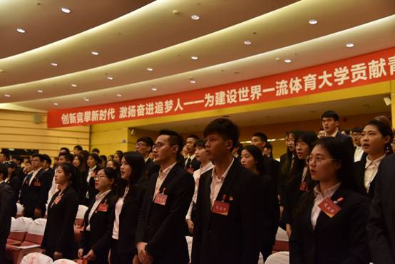 大会号召,要在团市委和学校党委的领导下,团结带领学校广大青年,不断推进共青团工作和共青团组织建设理论创新、实践创新和制度创新,确保团的建设与发展始终满足时代需要、符合青年期待,不断开创具有时代特征、体育特点和体院特色的共青团工作新局面。在新的征程中,不忘跟党初心,牢记时代使命,秉承“身心一统,兼蓄竞攀”的校训,为实现中华民族伟大复兴的中国梦,为上海体育学院建设成为世界一流体育大学贡献青春力量,让我们一起做激扬奋进的绿瓦追梦人,在创新竞攀的新时代中奋力谱写更加辉煌壮丽的青春新篇章!