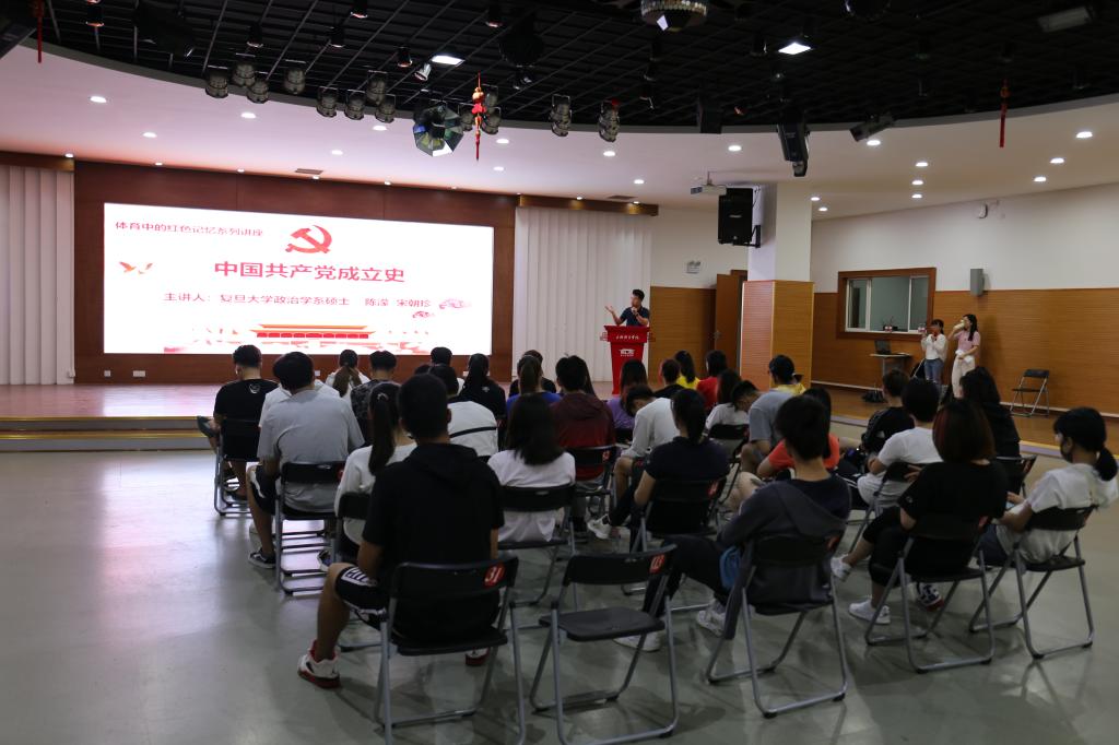 本网讯 6月21日上午,体育教育训练学院在学生活动中心二楼会议室与三楼演艺厅分别举办两场“体育中的红色记忆”系列讲座,讲座主题分别为“中国共产党成立史”和“改革开放——文化领域改革”。复旦大学国务学院分团委书记赵晓惠、体训学院党总支副书记副院长曹智超、团总支书记和辅导员代表参加了本次活动。