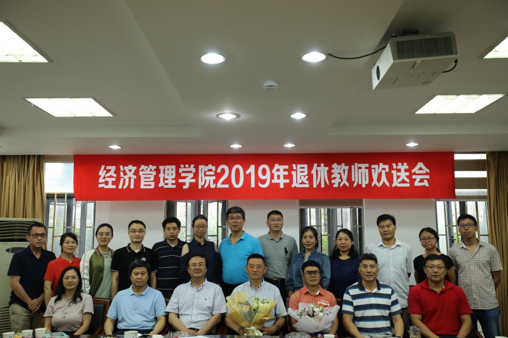本网讯 6月25日上午,经济管理学院会议室内欢声笑语,热情洋溢,学院领导班子、中青年教师代表齐聚一堂,为张林、韩思音两位老师举行退休欢送会。会议由党总支书记游林生主持。