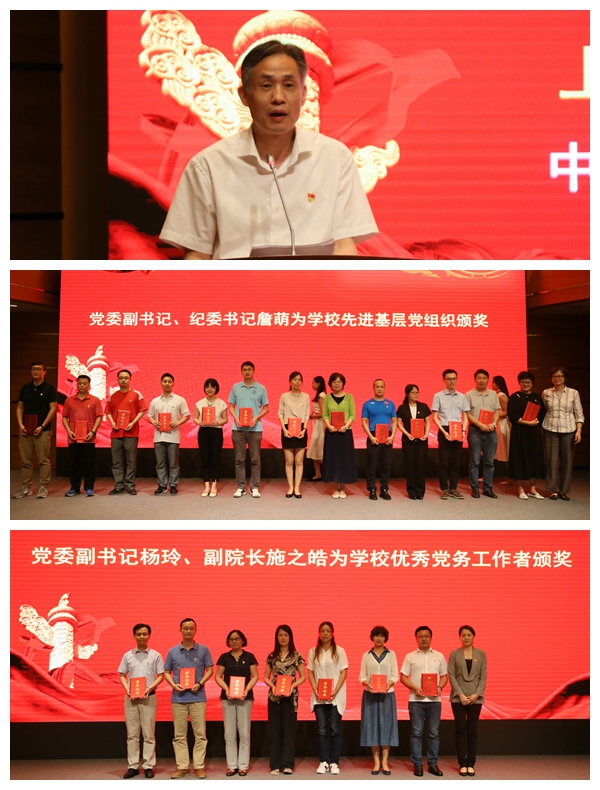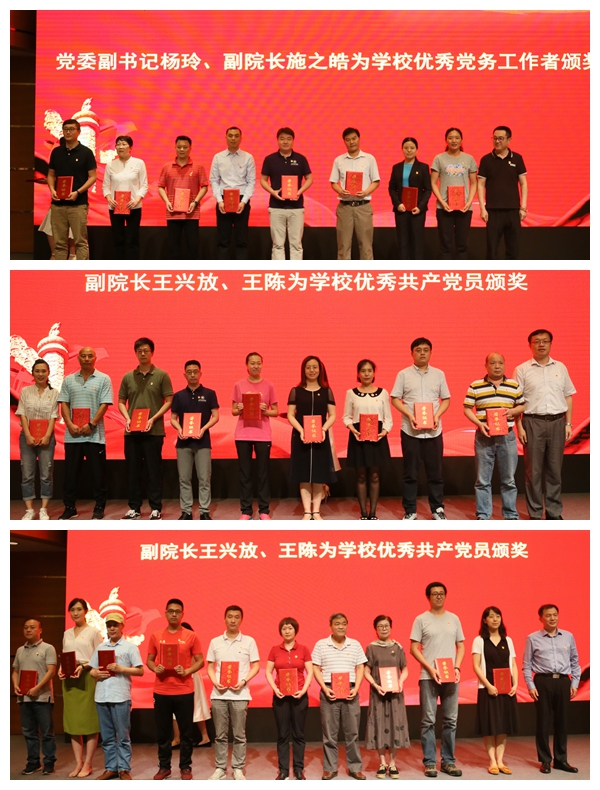 陈晓峰宣读了市教卫党委系统、上海体育学院先进基层党组织、优秀党务工作者、优秀共产党员表彰名单,党委副书记、院长陈佩杰,党委副书记、纪委书记詹萌,党委副书记杨玲、副院长施之皓、王兴放、王陈为市教委系统和学校受到表彰的“两优一先”基层党组织和先进个人颁发了荣誉证书。