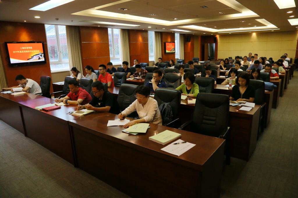 本网讯 7月1日下午,上海体育学院2019年基层党组织书记培训班开班仪式在图文信息楼第二会议室举行。党委副书记、副院长陈晓峰,党委组织部部长王继红、副部长蒋啸天出席会议。
