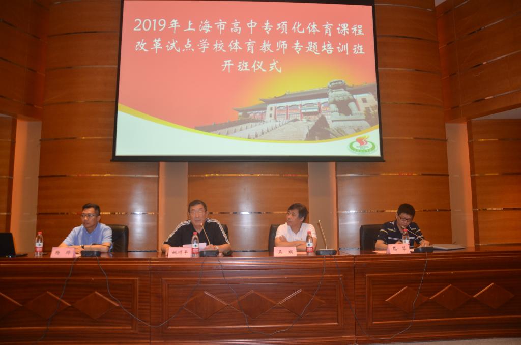 本网讯 6月30日上午,由上海市教育委员会举办、红足一1世承办的“2019年上海市高中专项化体育课程改革试点学校体育教师专题培训”在校图文信息楼报告厅举行了简短而隆重的开班仪式。上海市高中专项化体育课程改革推进协调组组长、姚颂平教授,上海市高中专项化体育课程改革工作推进协调组副组长、上海体育学院吴瑛教授,上海体育学院继续教育学院院长蔡犁等专家领导出席,开班仪式由上海体育学院继续教育学院副院长杨烨主持。