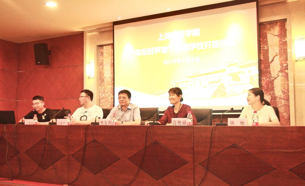本网讯 7月8日上午,上海体育学院“体坛好声音”暑期学校在图文信息楼第二会议室举行开班仪式。传媒与艺术学院院长杜友君,党总支书记高艳丽,党总支副书记、副院长陈怡,中央广播电视总台体育评论员、主持人刘星宇出席了本次开班仪式。开班仪式由暑期学校班主任丁勇尧主持。