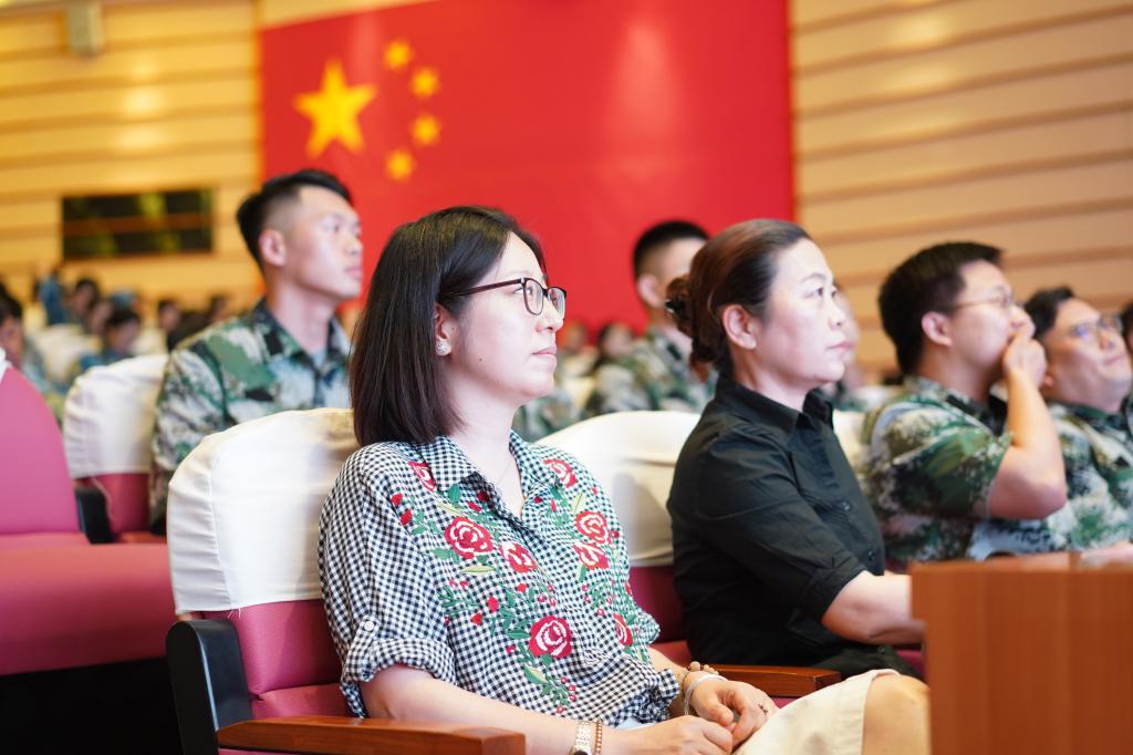 活动中,马克思主义学院教师张晓龙以《关注海洋国情 创新国防观念》为题与同学们分享了一堂别开生面的“国防微课”;退伍学生代表徐穗、张小乐、教师代表樊思聪分别与同学们分享了他们在酒泉卫星发射基地、95645部队、驻港部队三军仪仗队的故事;而本次军训团三营长刘涛涛则从扫雷英雄杜富国的故事讲起,与大家分享了他作为一名军人的自豪与对同学们本次军训的期待。