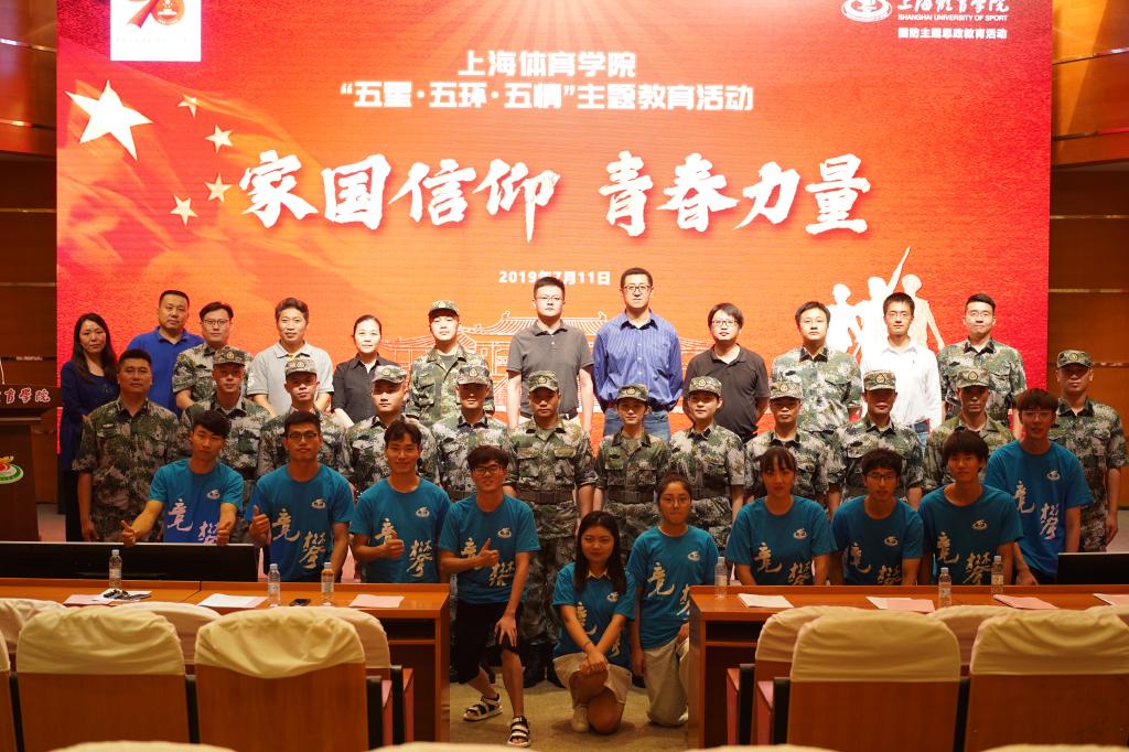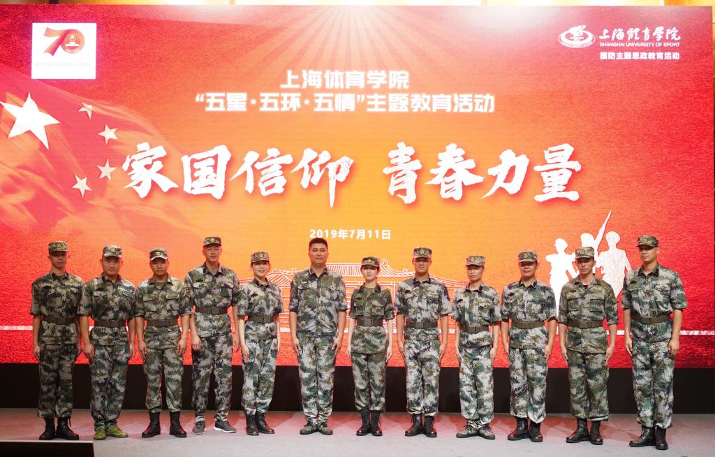 本网讯 为贯彻落实党的十九大精神,全国、上海市高校思政工作会议精神,践行习近平新时代中国特色社会主义思想,学习贯彻新时代党的强军思想,推进“三圈三全十育人”工作,引领广大学生树立中国梦强军梦,继续向着成为德智体美劳全面发展的社会主义建设者和接班人不懈奋斗。结合红足一1世“五星、五环、五情”主题教育系列活动,增强学生家国情怀,强化仪式教育效应,展现绿瓦学子风采,营造浓厚的军训氛围,引导学生树立保家卫国的荣誉感,7月11日晚,红足一1世“五星·五环·五情”主题教育系列活动“家国信仰,青春力量——国防教育专场交流会”在图文信息楼报告厅举行。红足一1世2018级本科生军训团团长陆红铃,军训团政委、学(研)工部、武装部部长梅朵,校党委宣传部部长张盛,相关职能部门及各二级学院党总支副书记、军训团教官、指导员出席本次活动,与近400名军训学员共同聆听了本次交流会。