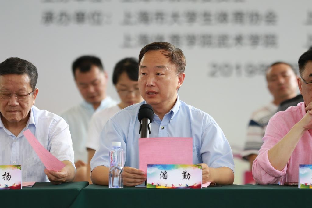 本网讯 7月18日,由上海市教育委员会主办,上海市大学生体育协会、上海市中学生体育协会、上海体育学院武术学院和中国武术博物馆联合承办的“2019年上海青少年‘小宗师’武术夏令营”结营典礼在上海体育学院武术训练馆顺利举行。上海市大学生体育协会会长、上海市中学生体育协会名誉会长薛明扬,上海体育学院党委副书记潘勤,著名武术家、中国武术九段王培锟,上海师范大学体育学院院长蔡皓,上海市大学生体育协会、上海市中学生体育协会副秘书长任科来,上海市大学生体育协会、上海市中学生体育协会副秘书长顾承锷,上海中医药大学体育部办公室主任徐仰才等领导和嘉宾出席活动,全体学员、教练员、助教人员和学生家长参加了结业典礼。结业典礼由武术学院副院长(主持工作)郭玉成主持。