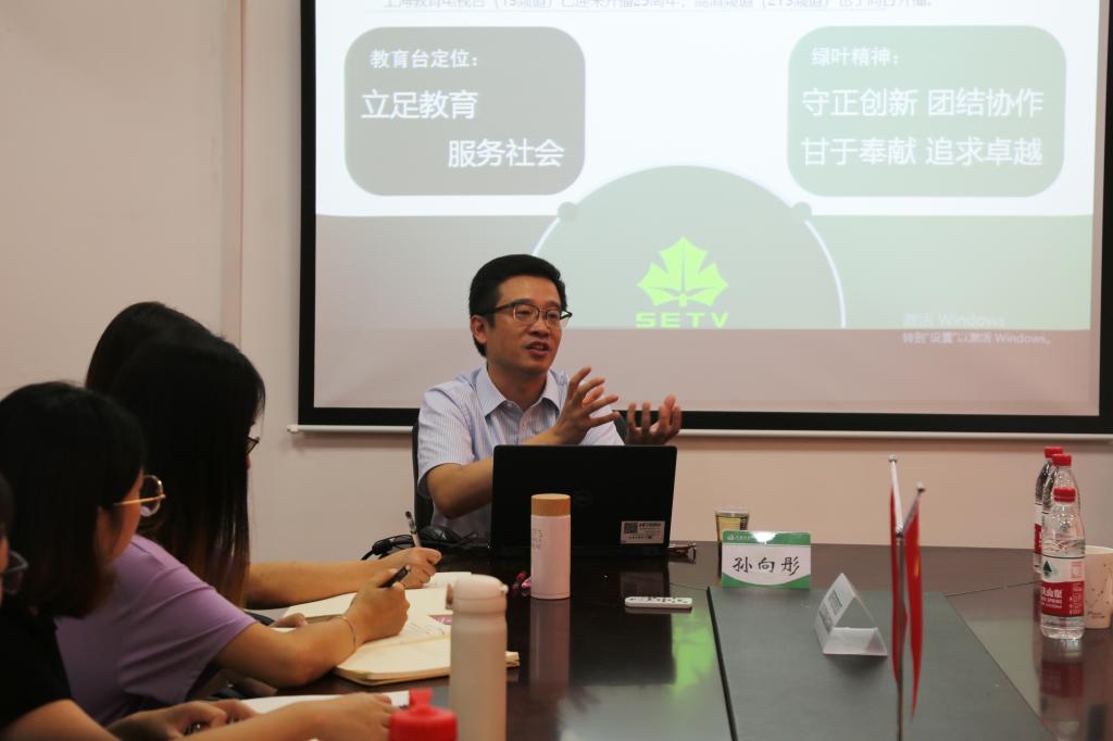 本网讯 7月25日上午,上海开放大学党委副书记、副校长、上海教育电视台台长孙向彤来红足一1世与师生交流座谈。党委常委、宣传部部长张盛、传媒与艺术学院党政负责人,研究生代表和校学生记者团学生代表参加座谈。