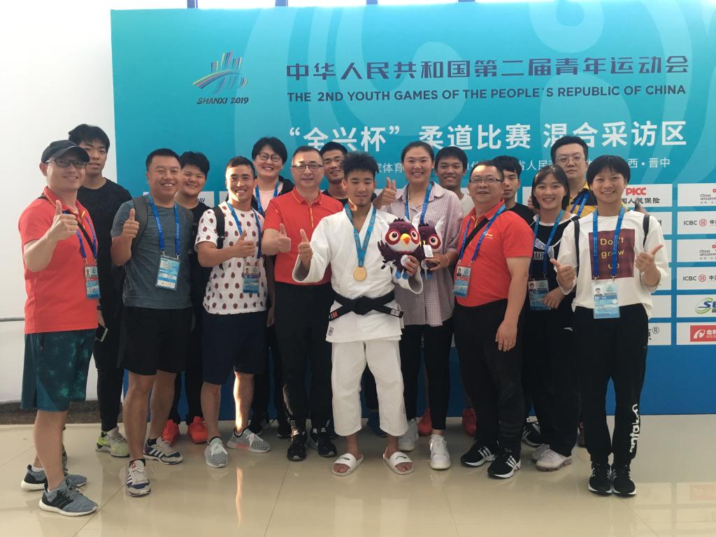 王江丰是以预赛第三名的成绩晋级此次决赛的,决赛中王江丰稳扎稳打,展现出了良好的技战术水平和精神风貌,一路过关斩将杀入冠亚军决赛!在金牌争夺战中王江丰精神抖擞,战术得当,始终占据着场上主动,最后凭借一个完美的一本动作结束比赛,获得了这枚宝贵的金牌。王江丰用优异的表现完美诠释了此次二青会的主题:“青春的盛会,拼搏的舞台!”