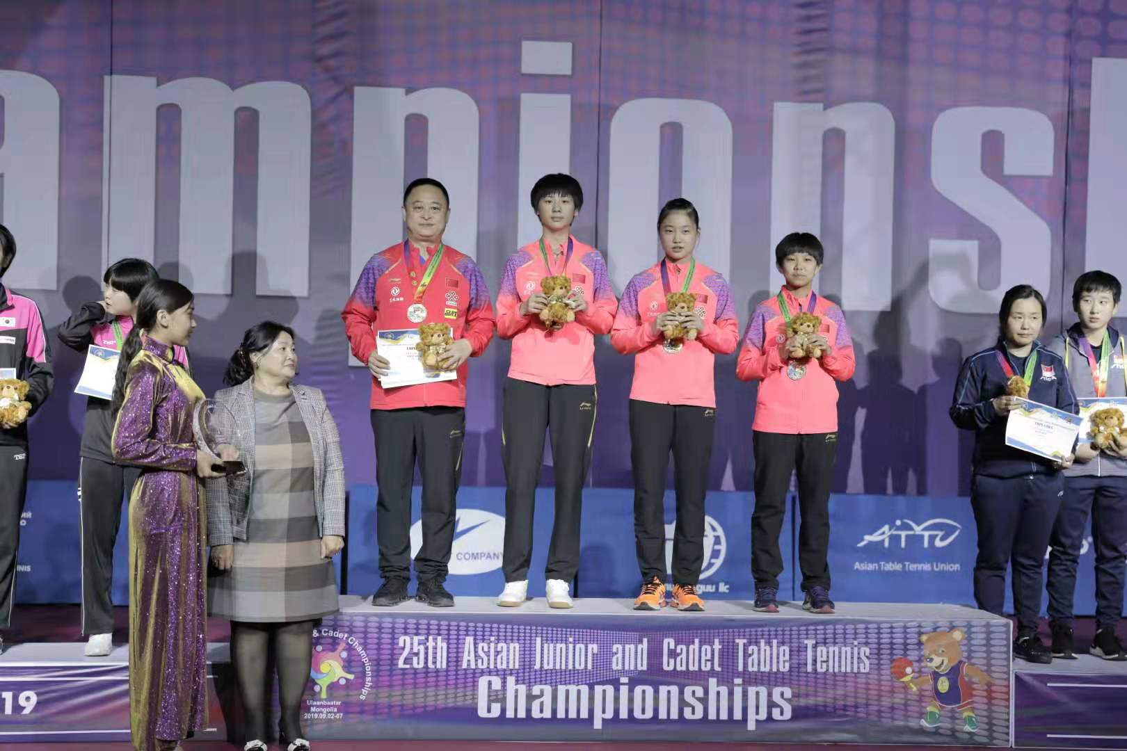 本网讯 2019亚洲青少年乒乓球锦标赛于2019年9月2日至7日在蒙古乌兰巴托举行。中国队派出了14位小将出战,参加U15男女单打、U15团体、U18男女单打、U18男女双打、U18混双和U18团体共九个项目的比赛。陈熠代表中国队出战,参加了U15女团、U15女单、U18女双三个项目的比赛,并夺得双冠!