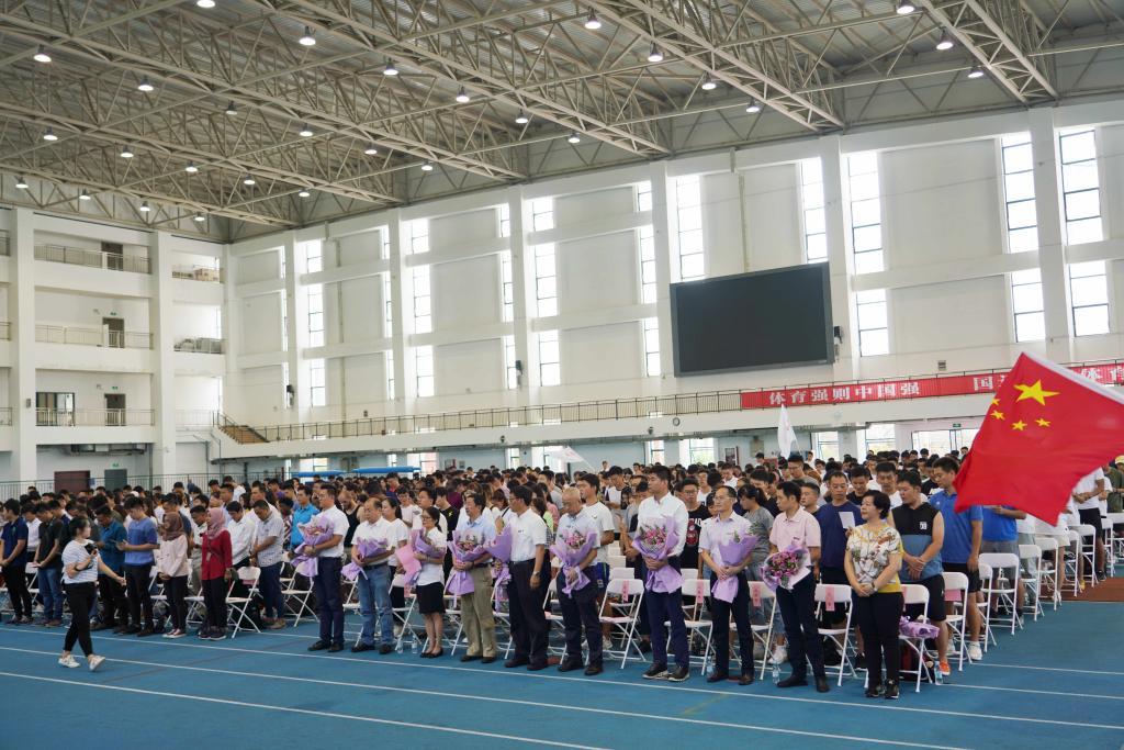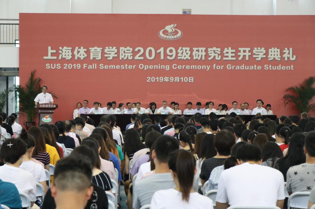 本网讯 9月10日上午,上海体育学院2019级研究生开学典礼在室内田径馆举行,700余名2019级新生参加开学典礼。党委书记李崟、党委副书记、院长陈佩杰,党委副书记、副院长陈晓峰,党委副书记、纪委书记詹萌,党委副书记杨玲,副院长施之皓、王兴放、王陈出席典礼。大会由陈晓峰主持。