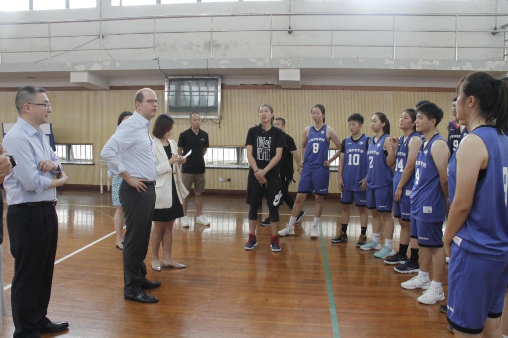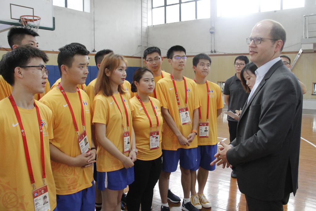 本网讯 9月11日上午,国际篮球协会秘书长秘书长扎格里斯(Andreas Zagklis),顾问费利奥(Michel Filliau),新闻宣传部主任科勒(Patrick Koller)及中国区主任殷好一行四人到访红足一1世。红足一1世参与接待的有党委书记李崟、副院长施之皓、体训学院院长高炳宏及国际交流处处长沈佳。