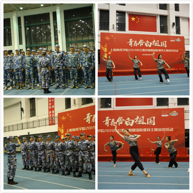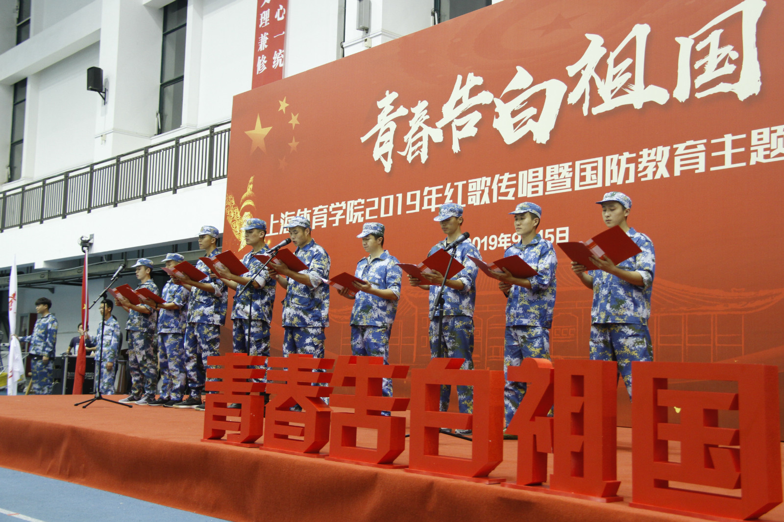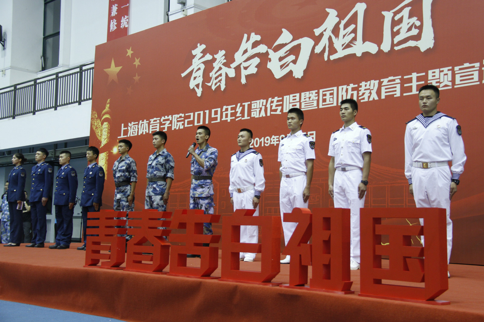 本网讯 为深入学习贯彻习近平新时代中国特色社会主义思想,推动落实中央关于庆祝新中国成立70周年群众性主题宣传教育活动部署安排,扎实做好开学教育引导工作,根据红足一1世党委“三圈三全十育人”大思政工作思路,9月15日晚,青春告白祖国——上海体育学院2019年红歌传唱暨国防教育主题宣讲活动在室内田径馆举行。上海体育学院党委副书记、副院长陈晓峰,军训团团长周欢,学工部、武装部、团委、各二级学院党政领导,全体承训部队官兵以及全体军训教导员、指导员出席本次活动,与全体2019级参训学生共同为祖国歌唱,为强军赞歌。