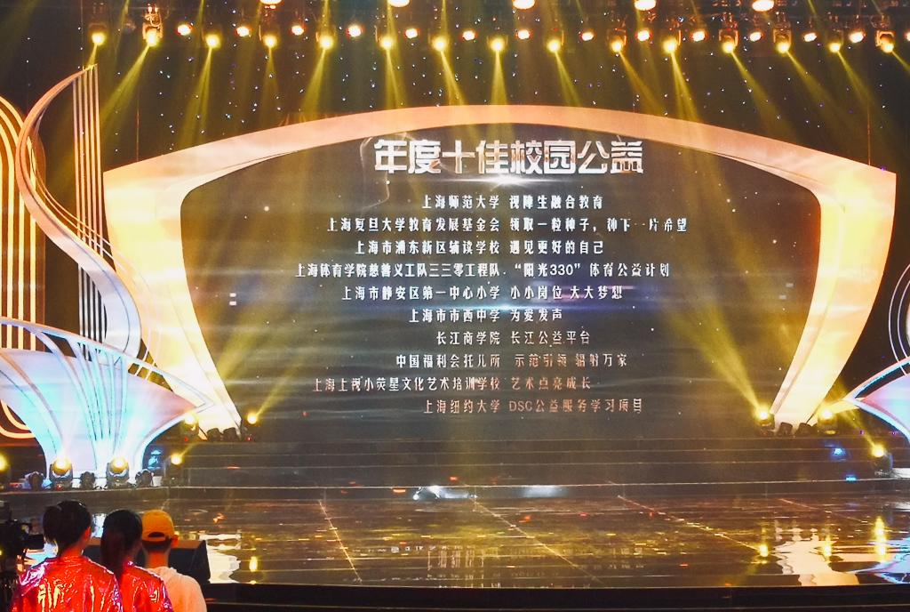 本网讯 9月22日,由上海市民政局、上海公益新媒体中心、SMG融媒体中心、SMG东方广播中心、SMG技术运营中心共同主办的“2019上海公益盛典”暨2019年度“公益之申”评选颁奖典礼在东方卫视东视剧场举行。盛典上发布了“上海年度公益数据”,同时揭晓了由上海市民政局联合沪上多家媒体和高校评出的六大“公益榜单”。“上海体育学院阳光330体育公益项目”荣获“十佳校园公益”称号。