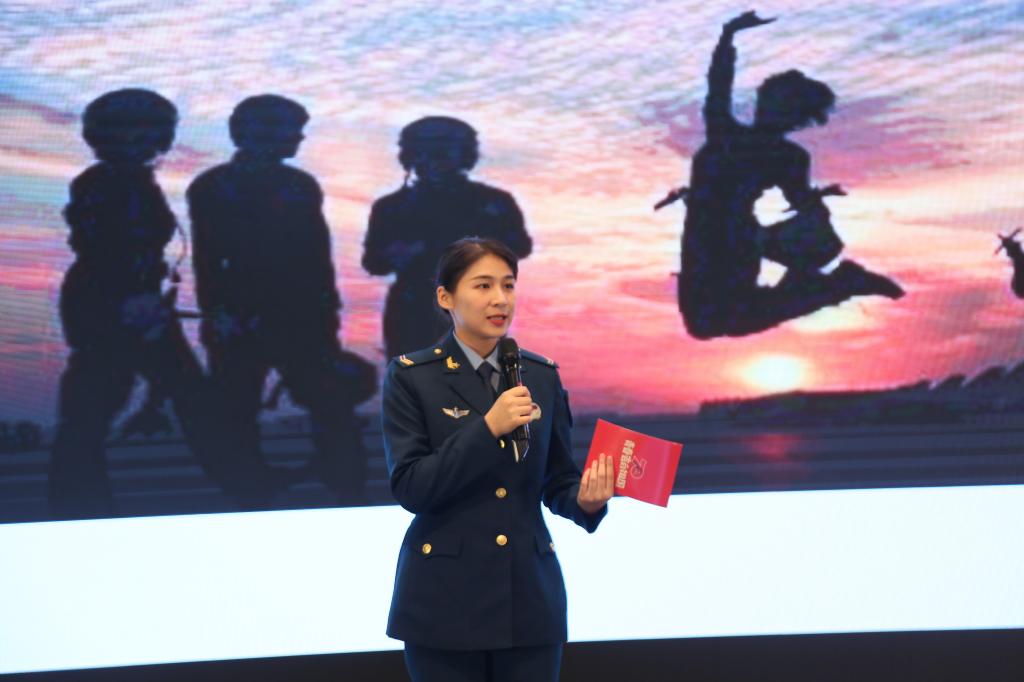 陆嘉琪则与同学们回顾了她的军旅生涯。作为一名传媒与艺术学院新闻系的学生,两年前正大四的她因为“想要拥有一段不一般的青春经历”选择了入伍参军。在现场,她与大家叙述了自己在新兵营时部队内务的严格要求以及队列与体能的高强度训练。经历过连续13个小时长达38公里的野外驻训,也常常在泥沙地里匍匐前进,控枪、打靶弄得满面尘土,但她说,随之而来的,是一种“哇,我也太酷了吧”的自豪感。由于她所服役部队的保密要求,她没有办法与大家分享更多的军旅故事,但她动情地说道,在我们一片祥和的日常背后,有千万军人数年的有家不能归。没有什么岁月静好,只是有人为你负重前行。正是有了军人们坚强的臂膀,才让我们有了诗和远方。