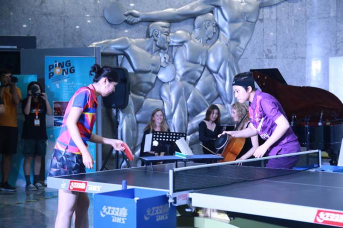 作为全国乃至全球首个以乒乓为主题的文化节,此次开幕式现场还为到场嘉宾特别呈现了来自国外艺术家们的特色乒乓表演。《一起乒乓舞Doubles》巧妙地将乒乓球融入当代舞中,古灵精怪的音乐氛围和色彩明快的节奏让这项运动焕发出新的魅力。《乒乓音符Bats and Beats》则是将乒乓比赛作为音乐合奏中的“打击乐组”,与钢琴、单簧管、大提琴一起变成一场别开生面、妙趣横生的音乐会。