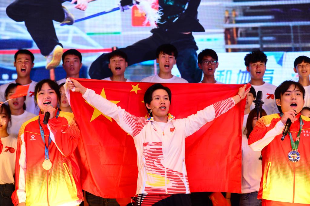 世锦赛散打冠军蔡颖颖这样说道:“在这奋进的新时代,我辈青年更应从我做起,尽责奉献,无悔青春。无问西东、不负芳华,播种梦想、超越梦想!”附属竞技体育学校的《爱我中华》和《超越梦想》表达出了运动员对祖国最直白、最真诚的爱。