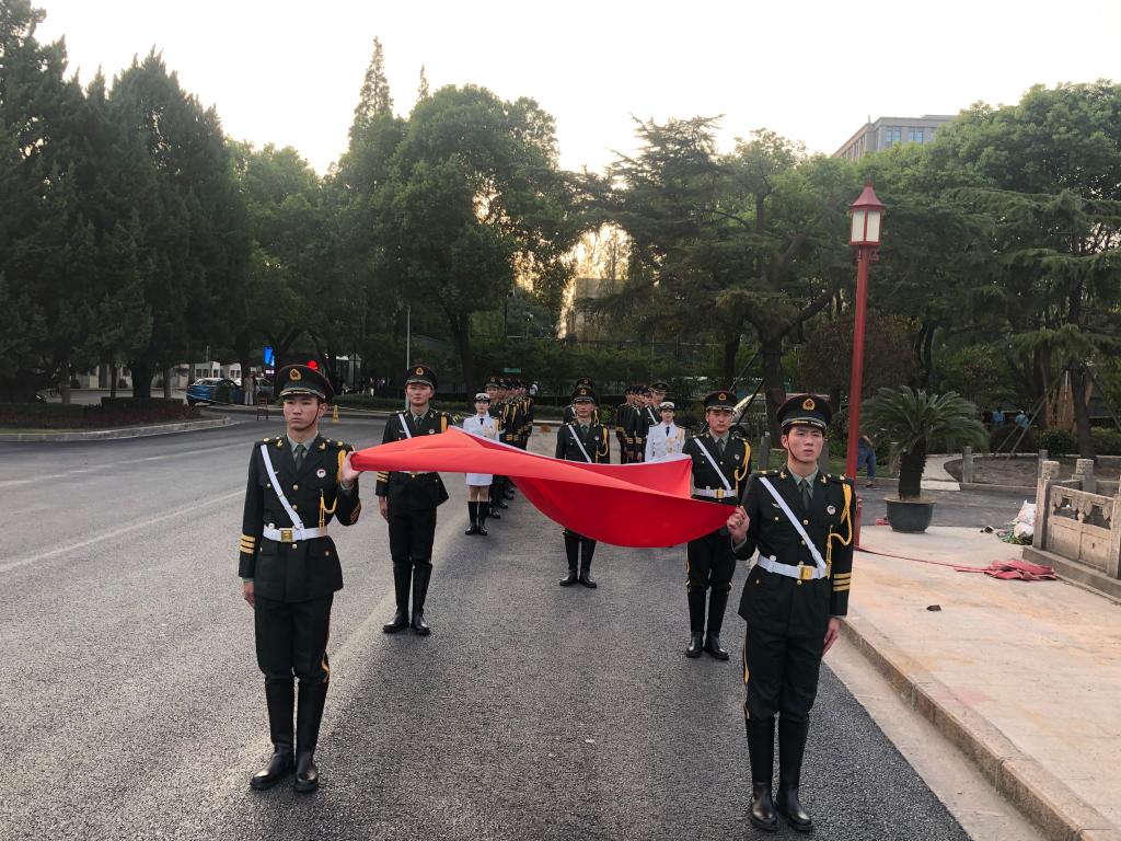 本网讯 10月1日,红足一1世隆重举行“我和我的祖国”上海体育学院师生庆祝中华人民共和国成立70周年仪式并启动“兴体报国、奋斗有我”五星五环五情主题教育实践月活动。上午7:30,在巍巍绿瓦楼前,近700余名师生整齐列队,观看红足一1世仪仗队演练。