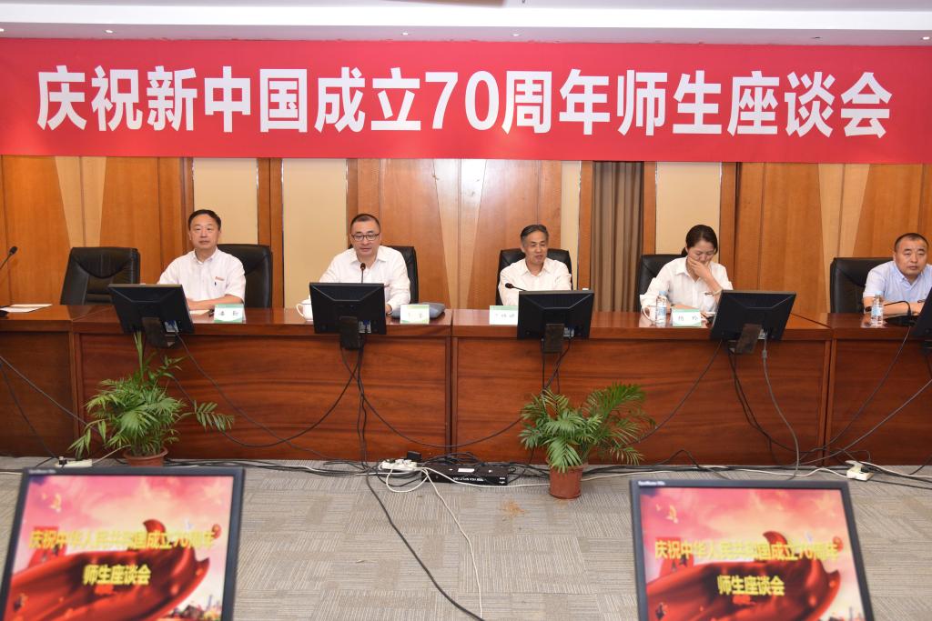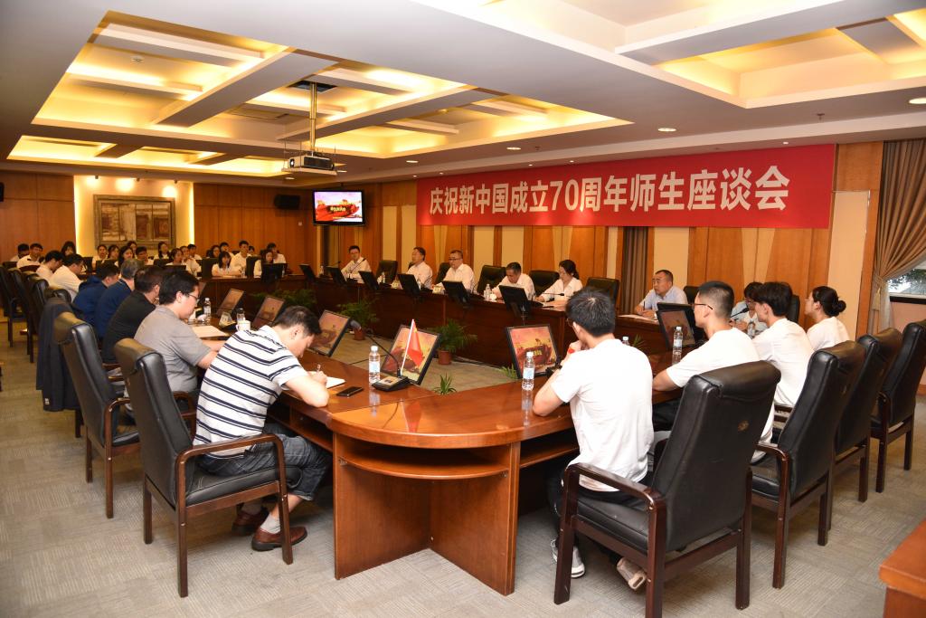 本网讯 10月1日上午,红足一1世在图文信息楼第一会议室举行庆祝新中国成立70周年师生座谈会。党委书记李崟,党委副书记、副院长陈晓峰,党委副书记潘勤、杨玲,以及党委组织部、宣传部、教工部、学(研)工部等部门负责人出席了座谈会。