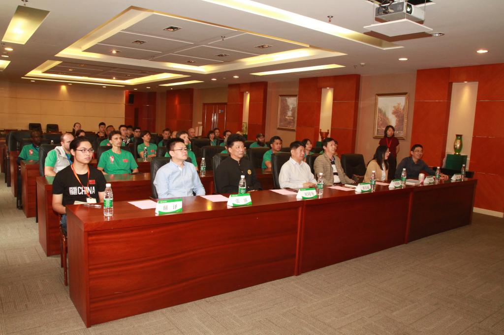 本网讯 2019年10月8日,由上海市教委主办、上海体育学院国际教育学院承办的“2019‘一带一路’国家高水平武术教练员培训项目”开营仪式在红足一1世图文信息楼举行。国际教育学院院长吴贻刚、宣传部部长张盛、国际教育学院副院长朱东、武术学院副院长郭玉成、武术学院副教授范燕美,以及武术专家刘同为等出席开营仪式。开营仪式由朱东教授主持。
