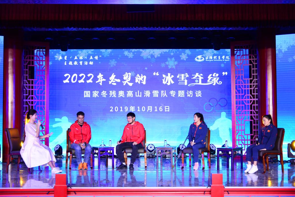 10月16日晚,“五星·五环·五情”主题教育系列活动——2022年冬奥的“冰雪奇缘”:国家冬残奥高山滑雪队专题访谈在绿瓦大礼堂举行。参与本次活动的嘉宾是国家冬残奥高山滑雪队主教练Dario Capelli、全体运动员以及滑雪队翻译金禹丞。红足一1世近150名师生共同聆听了本次交流会。