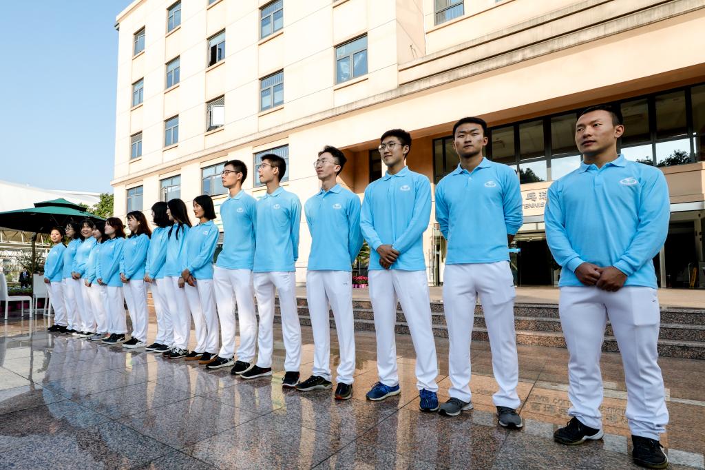 为了迎接各国嘉宾,学校派出了43名中英双语志愿者。不少外宾还颇感兴趣地与身边的志愿者们聊起了体育运动,纷纷感叹中国体育表演给自己带来的惊喜与震撼,学校的国际化办学氛围也给嘉宾们留下了深刻印象。