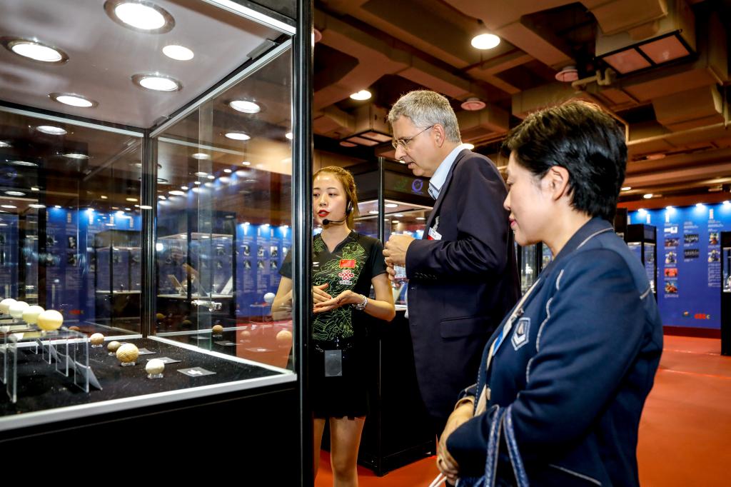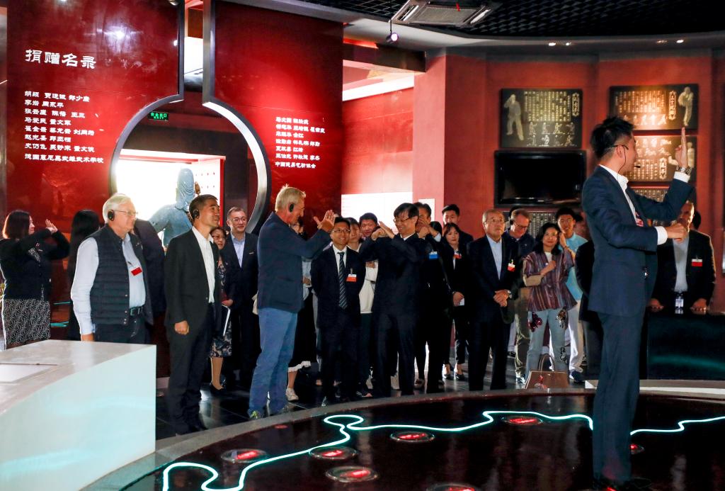 在中国武术博物馆内,嘉宾们在讲解员的带领下,兴致勃勃地学起了武术中的抱拳动作,对馆藏的中国古代“十八般兵器”赞叹不已。