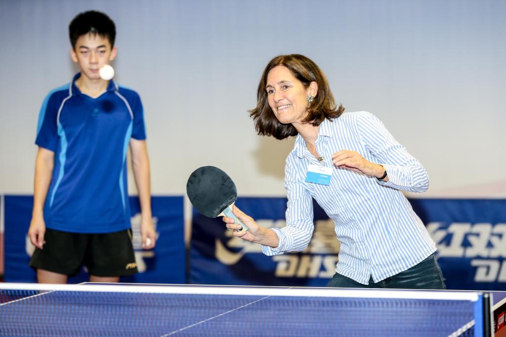 在中国乒乓球学院训练馆内,来自国际乒联博物馆的特别展览和上海体育学院办学成就展吸引了嘉宾们的兴趣,此次特展展出了国际乒联博物馆内的部分馆藏精品。看完展览,与AI乒乓球机器人过招,与小运动员们过招,嘉宾们通过乒乓球等级测试还能获得等级测试证书。