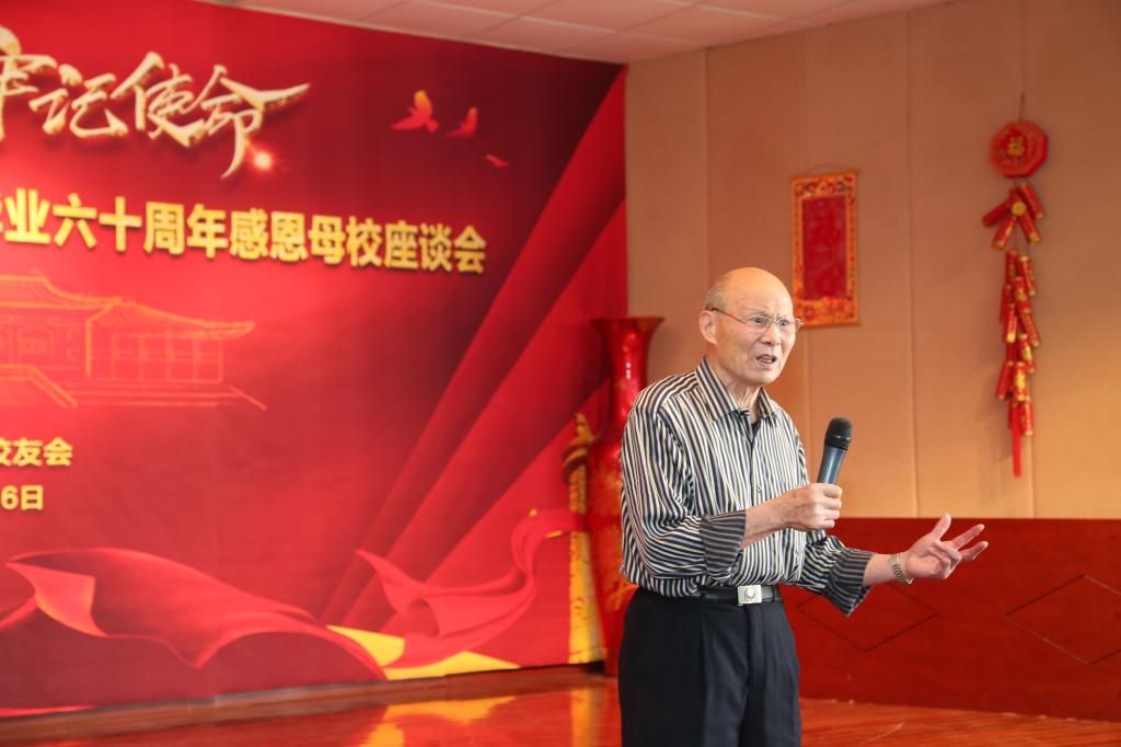 老校友们感叹于母校的发展变化,表示赞叹和衷心地祝福,59届校友代表的发言无不表达了对母校精心培养的感谢之情,对老师谆谆教诲的感恩之情,与同学们60年后相聚的激动之情,并共同回忆了建校初期的艰难岁月。
