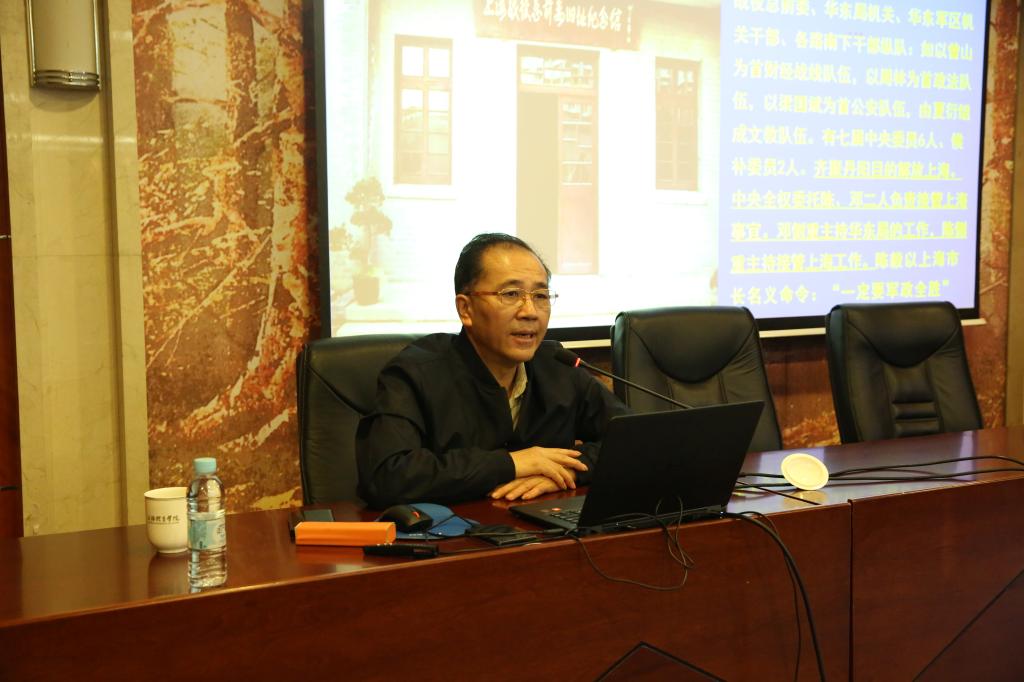 忻平教授以《不忘初心,牢记使命:学好党史、新中国史》为主题,作了精彩的专题报告。他全面阐释了学好党史、新中国史的重大意义,必要性和深刻内涵。他指出党史国史是共产党员的必修课、“教科书”、“营养剂”;党史研究必须科学化,要坚持马克思主义,坚持实事求是的原则;我们要科学把握党史发展主题和主线,深刻揭示党史发展的主流和本质,要把98年党史与近180年近代史和建国70年来的三段历史衔接起来,深刻认识历史和人民选择中国共产党、选择马克思主义、选择社会主义道路、选择改革开放的历史必然性。忻平教授结合丰富的史料,回顾了党史和新中国史上的重大事件、重要会议和关键人物,尤其是中国共产党早期组织创建、上海在建党中的贡献、上海解放的历程和解放后的改造等几段历史,细数了党取得的伟大成就,诠释了对党的初心、使命的认识,得出了从党史中汲取智慧和力量,以指导中国特色社会主义建设,实现中华民族伟大复兴的中国梦的结论,并就如何学习好、利用好党史、新中国史进一步指导工作实践,提出了切实中肯的意见建议。
