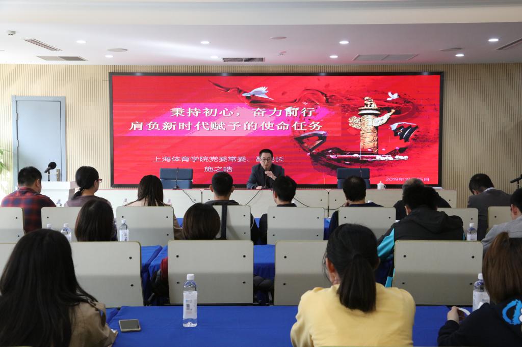 本网讯 10月30日下午,按照学校党委“不忘初心、牢记使命”主题教育统一部署,校党委常委、副院长施之皓讲授题为 “秉持初心、奋力前行,肩负新时代赋予的使命任务”的专题党课,中国乒乓球学院分党委副书记、副院长李汶凯,中国乒乓球学院副院长、教工党支部书记陈彬,中乒院党员师生以及国际乒联博物馆和中国乒乓球博物馆全体党员参加学习。