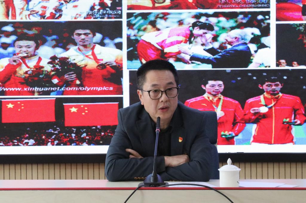 施之皓结合学习习近平总书记关于体育、教育重要论述的体会和自己的工作经历,从学深悟透,把握新时代体育人的初心使命;知行合一,承担新时代赋予使命任务;融会贯通,在新时代中奋力担当作为三个方面深入浅出的分享了学习收获和思考。施之皓还以“国乒精神”为切入点,结合自己在中国乒乓球队执教的经历和感受,通过回顾国乒兴盛之路,生动地阐述了支撑国乒长盛不衰的爱国主义精神、集体主义精神以及不断创新的精神和自强不息的精神,他希望大家把这种精神融入推动事业发展各项工作中,融入我们为人民谋幸福、为民族谋复兴的实际行动中。