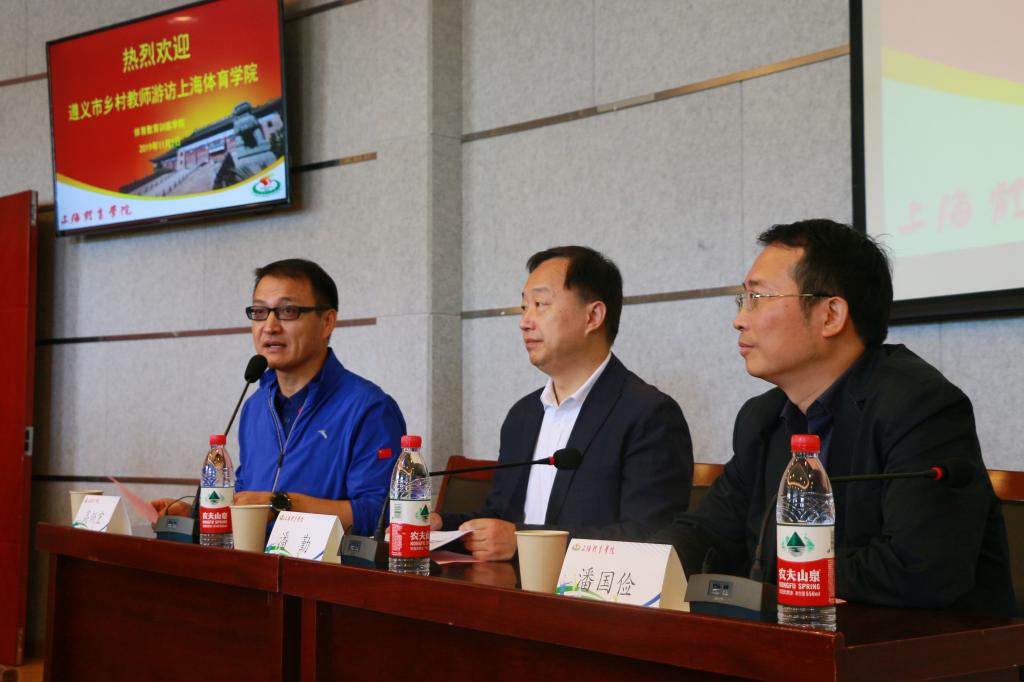 本网讯 11月4日上午,贵州省遵义市100名乡村教师来红足一1世参观学习。学校党委副书记潘勤、上海市教育人才交流服务中心副主任潘国俭、体育教育训练学院院长高炳宏出席欢迎会。欢迎会由高炳宏主持。