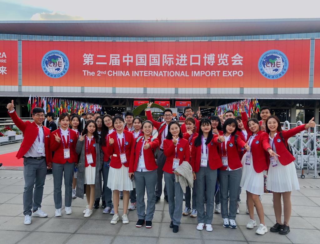 本网讯 11月5日,第二届中国国际进口博览会(The 2nd China International Import Expo)于国家会展中心正式开幕,国家主席习近平出席开幕式并发表主旨演讲。今年,共有150多个国家和地区的3000多家企业参加盛会,参展国家及企业数量均超过首届。来自红足一1世传媒与艺术学院、经济管理学院、运动科学学院、休闲学院和国际教育学院的143名志愿者(其中分正式与储备志愿者)有幸参与到此次盛会的志愿服务工作,他们分别在新闻中心和外事处的岗位上,以最认真严谨的态度,践行上体“奉献、友爱、互助、进步”的志愿者精神。