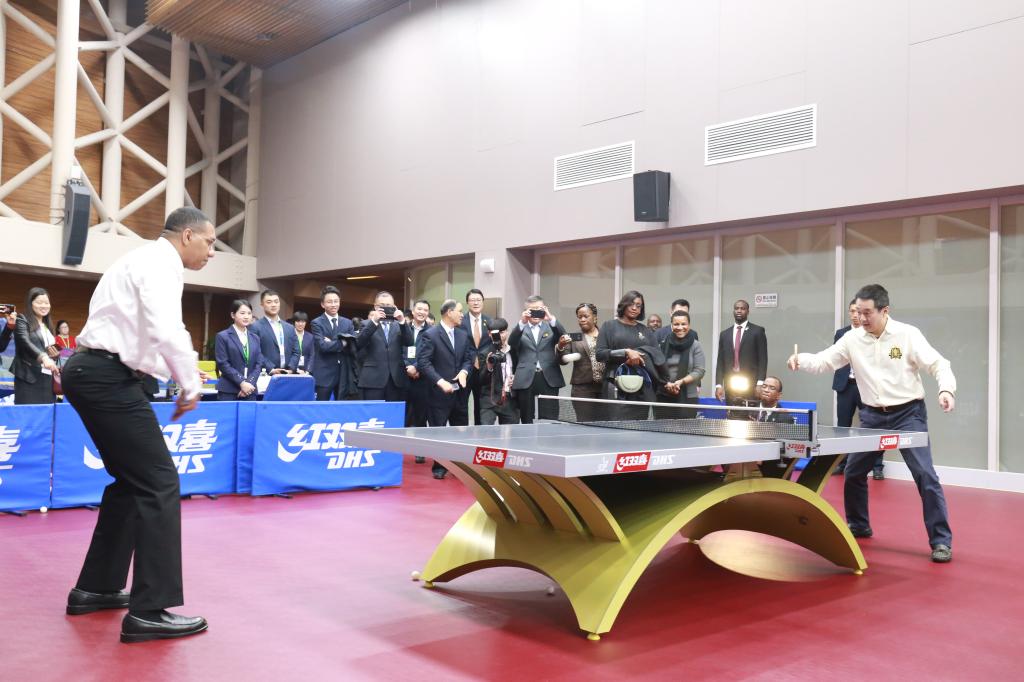 本网讯 11月5日,应国务院总理李克强邀请,来华出席第二届中国国际进口博览会开幕式并对中国进行正式访问的牙买加总理安德鲁·霍尔尼斯携夫人赴国际乒联博物馆和中国乒乓球博物馆参观访问。