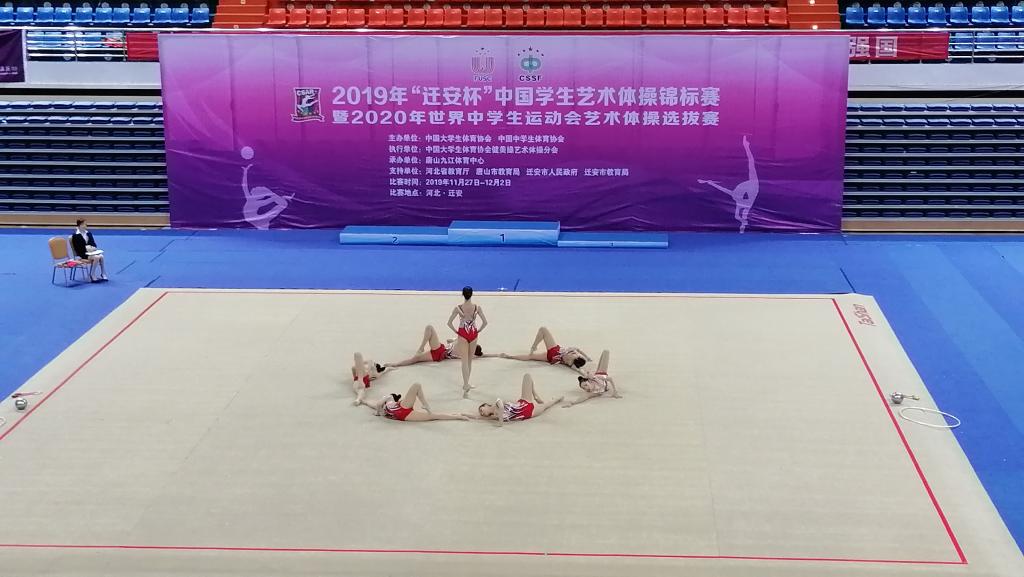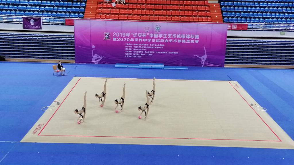 本网讯 2019年“迁安杯”中国艺术体操锦标赛于2019年11月27日至12月2日在河北省迁安市九江体育中心举行。本次比赛共有来自全国21个省、自治区和直辖市的77支代表队1030余名艺术体操运动员、教练员参赛,堪称是本年度全国学生艺术体操比赛“规格最高、组别项目最多、普及面最广的一次校园学生艺术体操盛会。