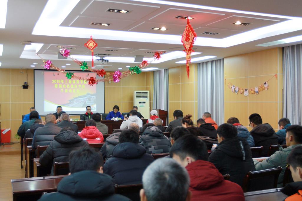 本网讯 12月17日中午,上海体育学院附属竞技体育学校2019年冬训动员会在竞校108会议室举行。上海体育学院副院长施之皓出席会议并作冬训动员,出席动员会的人员还有竞校领导班子、教练员、运动员及保障人员,会议由竞校党总支副书记副校长罗海涛主持。
