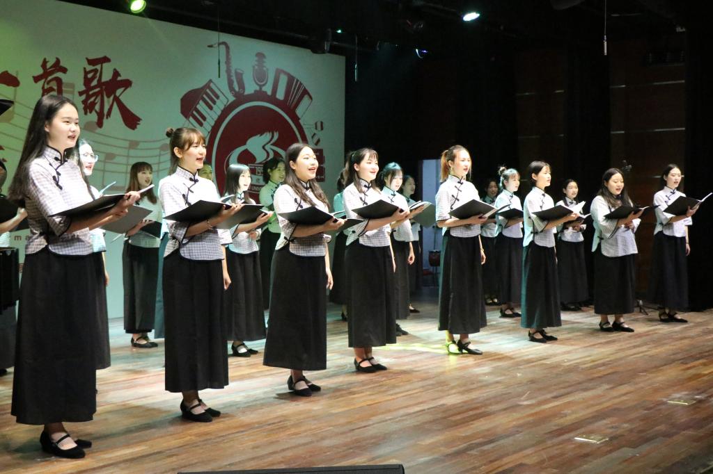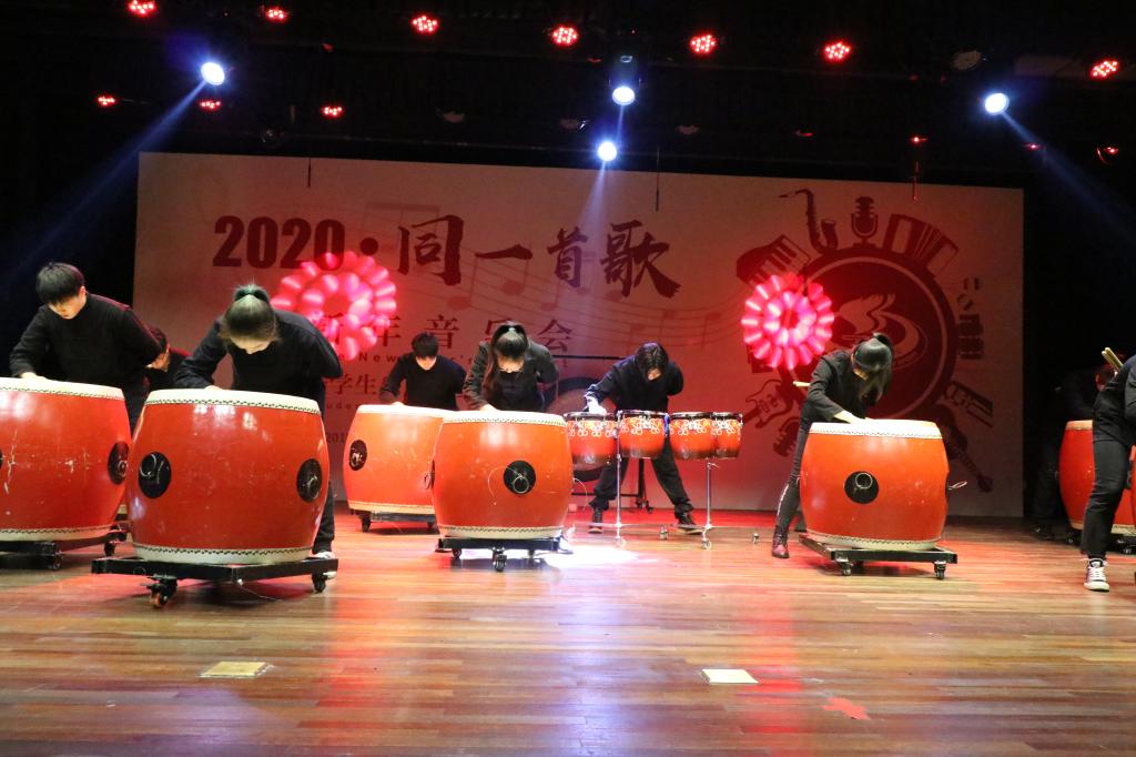 2019年新年音乐会分上下半场。上半场的曲目侧重表现中华古典民乐的细腻和悠扬。由弦乐团带来的《同一首歌》拉开帷幕,打击乐团用鼓棒和鼓击打出不断变幻的韵律,一首《韵》气势恢宏,充分展现了中国鼓的古典大气;合唱团的女孩子们带来了我们熟悉的《茉莉花》、《风吹麦浪》,她们悠扬的歌声令人沉醉;陈清影同学带来的《幸福渠水到俺村》节奏轻快,蕴含迎接新年的喜悦之意;古筝合奏《渔舟唱晚》颇有古典韵味;《金蛇狂舞》那熟悉的旋律洋溢着热情,渲染了新年的欢腾气氛;《八月桂花遍地开》曲调优美,是耳熟能详的红色经典曲目;上半场的尾声是由打击乐团与留学生们合作带来的《WE KNOW THE WAY》,节目将非洲鼓与人声结合,轻快的旋律预示着新的一年,绿瓦人将谱写更加绚丽的篇章。