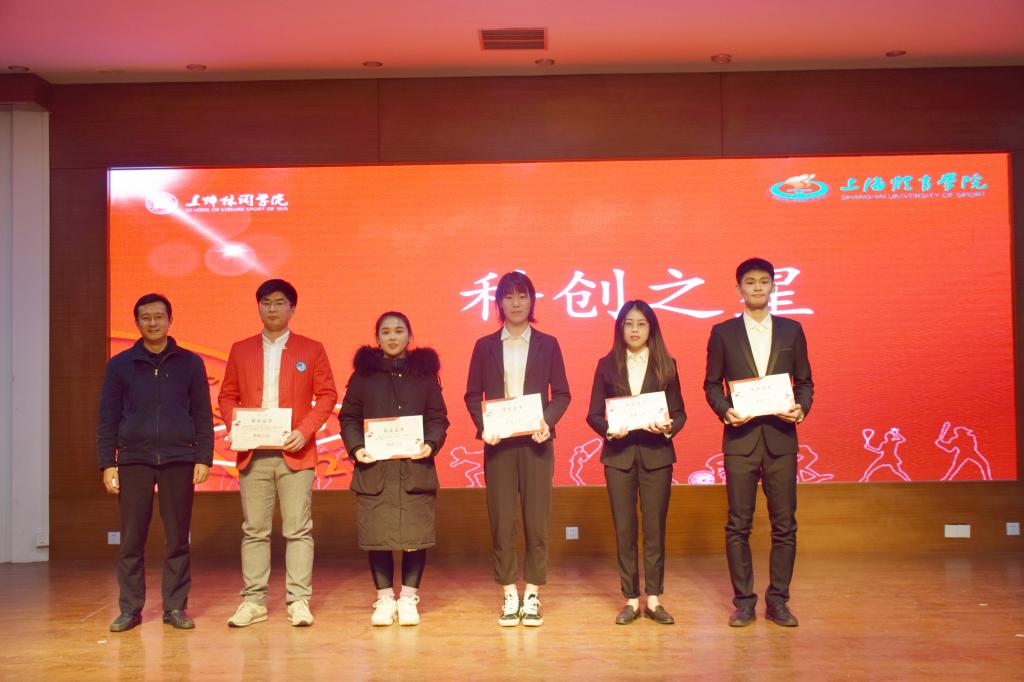 为了鼓励广大同学积极参与学生课外学术科技与创新创业活动,营造更好的校园创新文化氛围,晚会表彰了在科创活动中取得优异成绩的“红色筑梦三项赛”、“上海市高校学生户外运动旅游消费现状调查”、“‘强健共和国的脊梁’我国煤矿工人的体育社工服务嵌入调查”、“赣南革命老区红色文化资源开发的现状、对策及优化路径——基于江西省赣州市于都县的实地调查”团队以及韩宏宇同学。