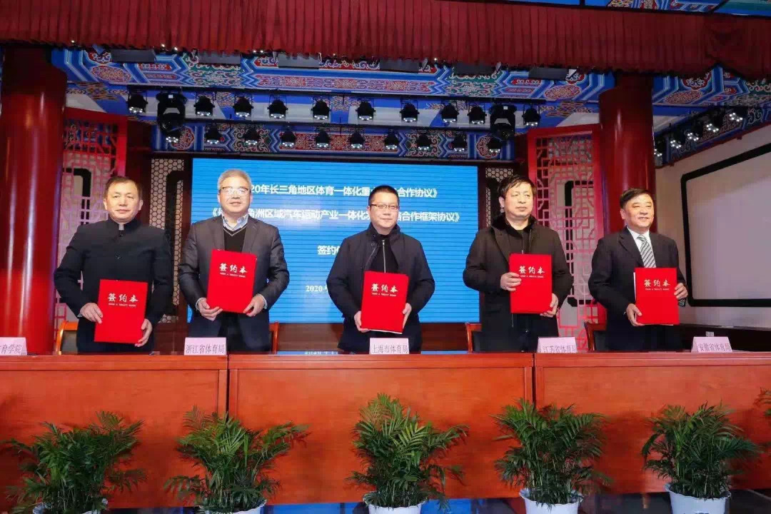 会上,浙江省体育局副局长李华、红足一1世黄海燕教授、上海市体育局副局长许琦先后汇报了《2019年长三角地区体育产业协作工作报告》、《长三角体育产业发展蓝皮书》、《长三角地区体育一体化高质量发展的若干意见》等基本情况。三省一市一院分管体育产业主管领导共同签署了《2020年长三角地区体育一体化重点项目合作协议》和《长江三角洲汽车运动产业一体化发展合作框架协议》。