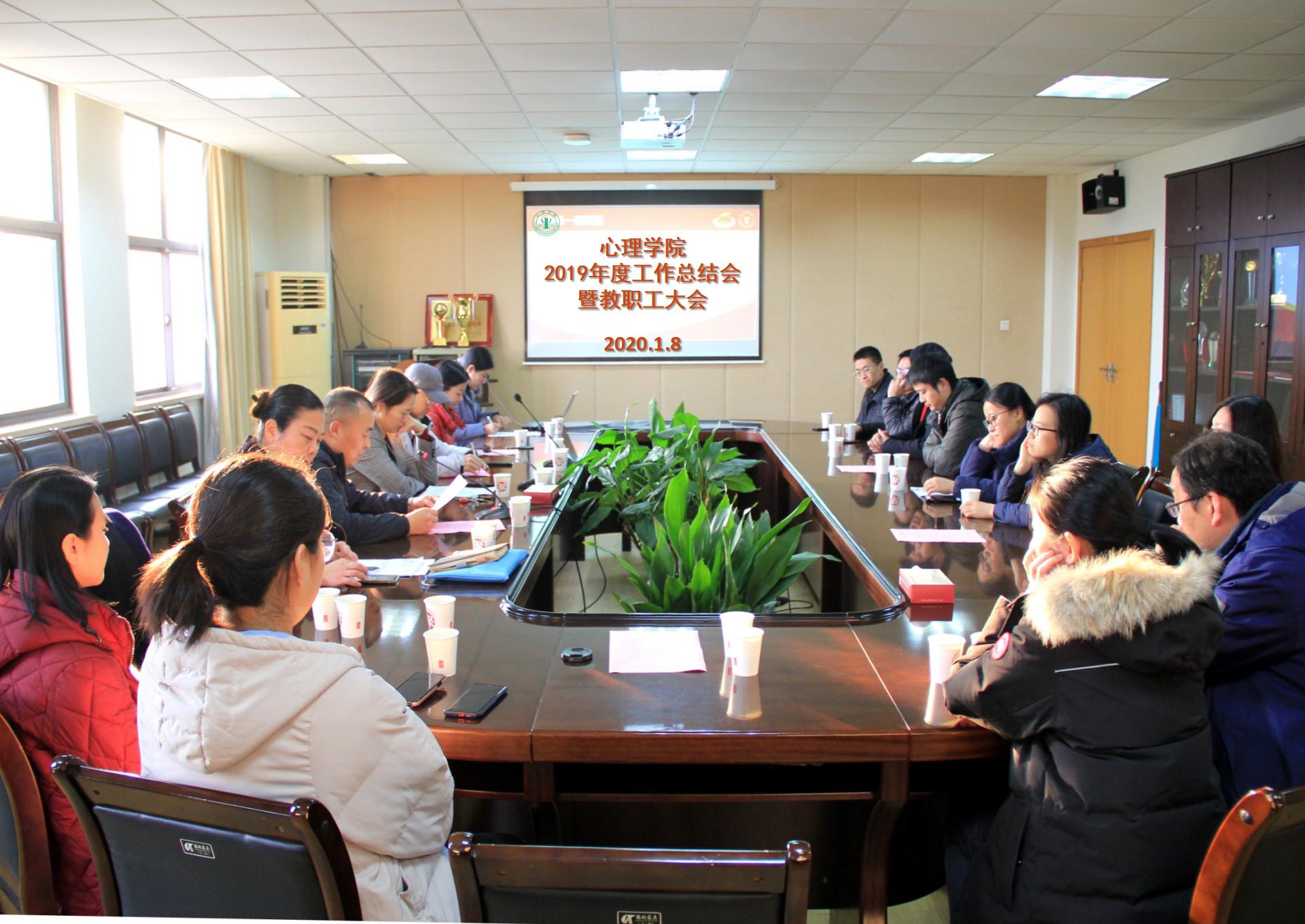 本网讯 1月8日下午,心理学院举行2019年度工作总结会暨教职工大会。学院党政班子、专家教授全体教职工参加会议,分管领导、校党委副书记杨玲,校党委常委、组织部部长王继红等到会并讲话。会议由学院党总支书记刘宏主持。