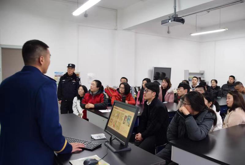 国和消防中队队长向师生们讲授了安全消防知识,同时针对高校实验室可能出现的化学制品及有害气体泄露问题,讲授了专门的防护措施,特别是在有害气体弥散时,应当采取以下几点措施:1、发生事故后,人员和伤员要立即撤离至上风处,隔离至气体散净。2、合理通风,切断气源。发生燃烧或爆炸的,要根据泄露有毒气体性质,使用泡沫或沙土灭火。对有毒气体使用泡沫或喷雾状水稀释、溶解,并收集和处理废水。抽排(室内)或强力通风(室外)。3、处置工作现场严禁吸烟、进食、喝水;工作后立即淋浴更衣;进入有毒气体高浓度区域工作必须有人监护。4、处置中毒人员。迅速撤离中毒人员至空气新鲜处,保持安静和保暖。用清水清洗受污染的皮肤,脱去受污染的衣服。注意观察早期病情变化,必要时吸氧。中毒人员应避免活动,严重者速送医院抢救。
