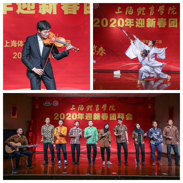 在喜庆祥和的氛围中,大家一同观看了师生文艺爱好者献上的精彩文艺节目。小提琴独奏《春节序曲》和武术表演《梁祝》展示了绿瓦学子的青春风采,国际学生合唱的《星星索》用美秒的声音吟唱出了大家熟悉的老歌,教工独唱《快乐老家》让与会者回首峥嵘岁月。节目的最后,校领导和教职工书法协会的老师们泼墨挥毫,为大家送上五“福”临门,祝福全校师生员工在庚子新年里身体健康、工作顺利、阖家幸福、吉祥如意,祝福学校事业发展取得更大的进步!